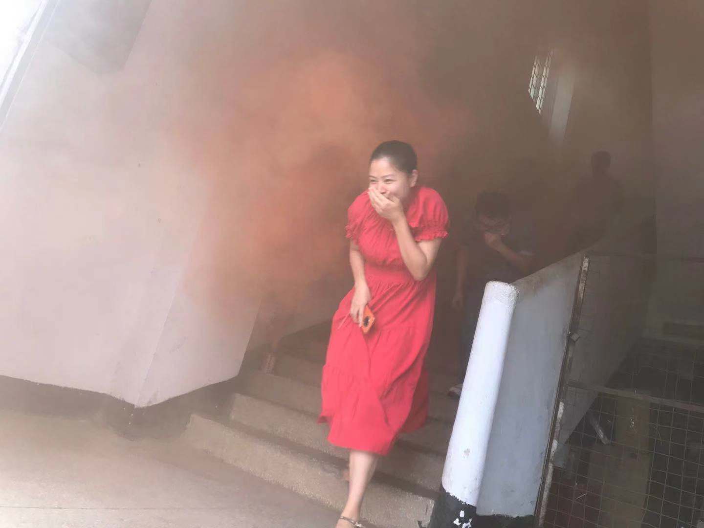 8月31日下午三點, 隨著一股濃煙飄進辦公樓內,急促刺耳的警報聲響起,消防應急疏演練正式開始。有同事在樓道旁引導員工快速疏散,每個人各捂住口鼻,低頭有序沿著安全通道,撤離到露天地帶。集合完畢后,各部門清點人數,并上報。整個演練過程安全、快速,僅用時3分鐘。