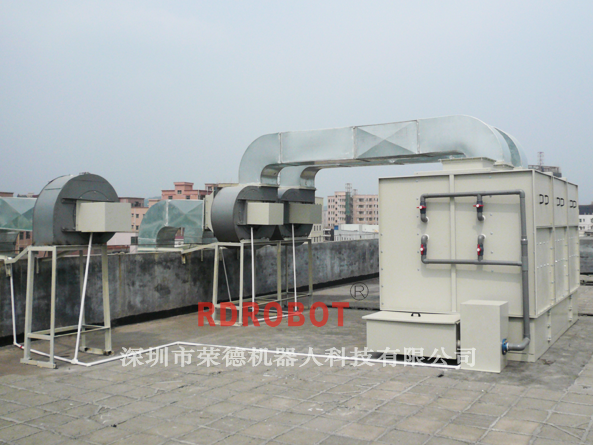 (1)廢氣處理設備設計成2套,一套處理噴涂倉的廢氣,一套處理涂層干燥、固化過程中產生的廢氣,設備放置在噴涂間頂上。