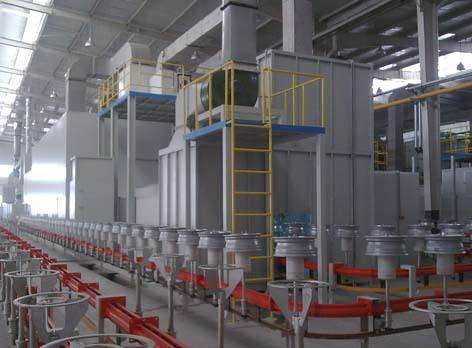自動涂裝流水線主要承擔波紋板結構件的拋丸清理、噴鋁、噴漆涂裝任務,根據(jù)產(chǎn)品涂裝要求,單班年產(chǎn)20000噸/年,折合掛數(shù)約10000掛,積放鏈節(jié)拍式生產(chǎn),生產(chǎn)節(jié)拍12min/掛。工件最大尺寸為7000X500X5000mm,最大重量6t。典型工件尺寸為5500長X500寬X5000高(mm),量最大(60-70%)。涂裝線的生產(chǎn)人員采用單班或兩班工作制,最多每天工作16小時/天。工作場地:室內(nèi),大小96m*24m。水源壓力:(工業(yè)自來水) ≮0.1MPa天然氣氣源壓力:≮0.6MPa;供電電源:AC380V50HZ(三相五線制)