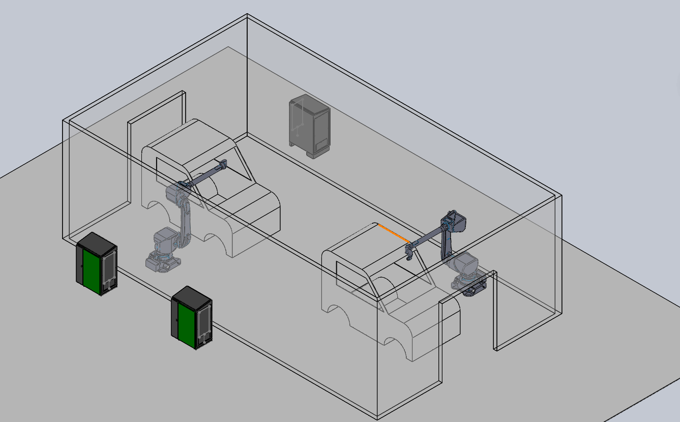 對機器人噴漆設備系統配備主電源控制,有效地對過電流、短路、過載、缺相等故障進行保護。對烘爐的控制加熱和自動恒溫控制,超溫、熱風循環風機故障時,自動關閉加熱裝置。發出聲光報警。對輸送的控制,采用變頻無級變速,具有運行平穩、安全可靠、無抖動爬行現象。在噴漆室內、外設有急停開關,并設有開線、停線報警裝置。整套系統配有安全保護裝置,并發出聲光報警。對噴涂機器人的控制,人工選定產品型號后發送信號到機器人控制柜,期間與噴房、輸送等各個信號間進行互鎖;PLC調用相關的噴涂軌跡完成噴涂作業。