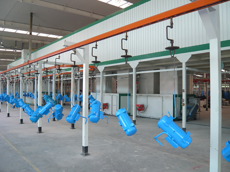 槽體采用雙面焊結構,不得有滲漏現象。每個槽設活動蓋,方便操作。槽體清渣口設計成活動門,要求密封可靠,清渣方便。槽液加熱采用燃氣熱水爐,其中一臺供應熱水洗和預脫脂工位,另一臺供應脫脂和化成工位。燃燒機采用進口意大利百得牌產品,全自動控制。槽液加熱采用槽內不銹鋼波紋板式換熱器。采用溫控儀控制電磁閥實現槽液控溫。溫控儀要求采用進口產品,電磁閥應采用國內知名品牌產品,以確保使用性能。噴涂系統(泵、閥、管路等)在出光、化成、純水段材質為SUS304,其余工位噴淋泵為鑄鋼材質,閥門、管路為碳鋼材質。噴淋泵采用立式液下泵,泵及主要閥門采用進口或國內名牌產品;