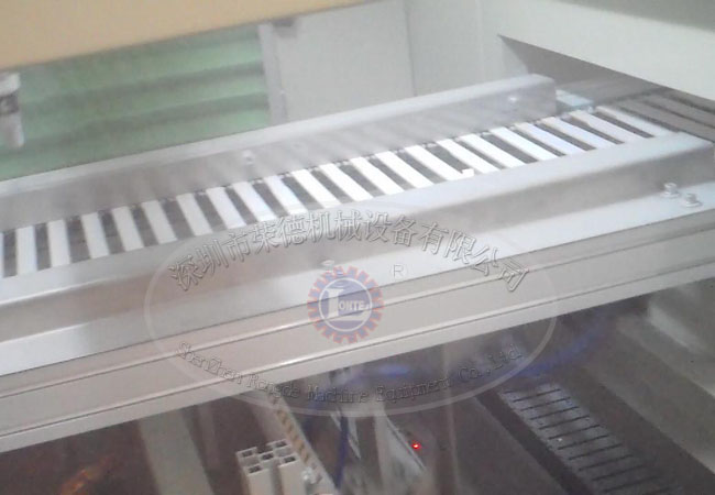 自動上料機構 :采用重力式拉料機構,上下兩層,工件自動翻面,木尺固定框采用鋁板制作。