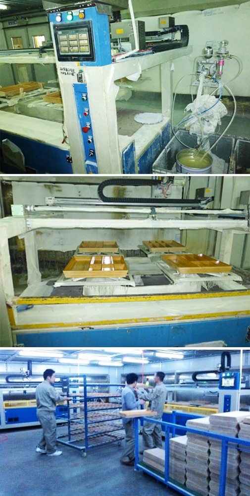 五軸雙頭四盤往復式自動噴漆機(竹筐案例)--非標訂做
